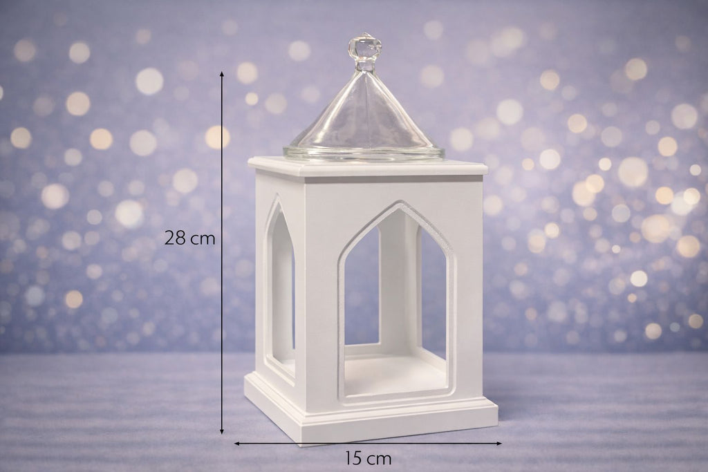Kollektionen indeholder dekorative elementer i guld og hvid, herunder lanterner, skåle og lyskæder med varmhvid LED-belysning, som giver et hyggeligt og roligt lys – ideelt til aftener, iftar og festlige sammenkomster. Produkterne kan placeres på borde, hylder, vindueskarme eller gulv og fungerer både enkeltvis og i kombination.